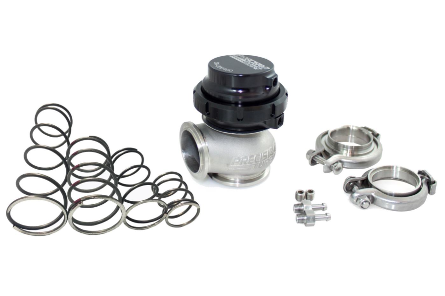 Precision Turbo and Engine’s high-quality yet economical GEN2 40mm external wastegate is perfect for the automotive enthusiast looking to get the most from their turbocharged car, truck, or any other vehicle. The GEN2 40mm external wastegate is fully adjustable and features the following: Super compact, high flow design ideal for applications with space constraints High grade, high temperature stainless steel and billet aluminum components for the best in strength, style and functionality at an affordable price. A 347 stainless steel cast valve body to provide consistent performance without fatigue or failure while also allowing for accurate boost control An internal Nickel Chromium Alloy Valve 6 different 17-7 precipitation hardened springs for maximum adjustment of boost levels V-band inlet/Vband outlet for easy/clean mounting Includes flanges and clamps need for mounting Satin black anodized finish with 6061 aluminum billet cap The GEN2 40mm wastegate is designed to be a direct fit replacement for other units on the market and is compatible with most aftermarket manual and electronic boost controllers for ease of use. As an added bonus, all GEN2 40mm wastegates are warrantied to be free from manufacturers defect for a period of 12 months or 12,000 miles.